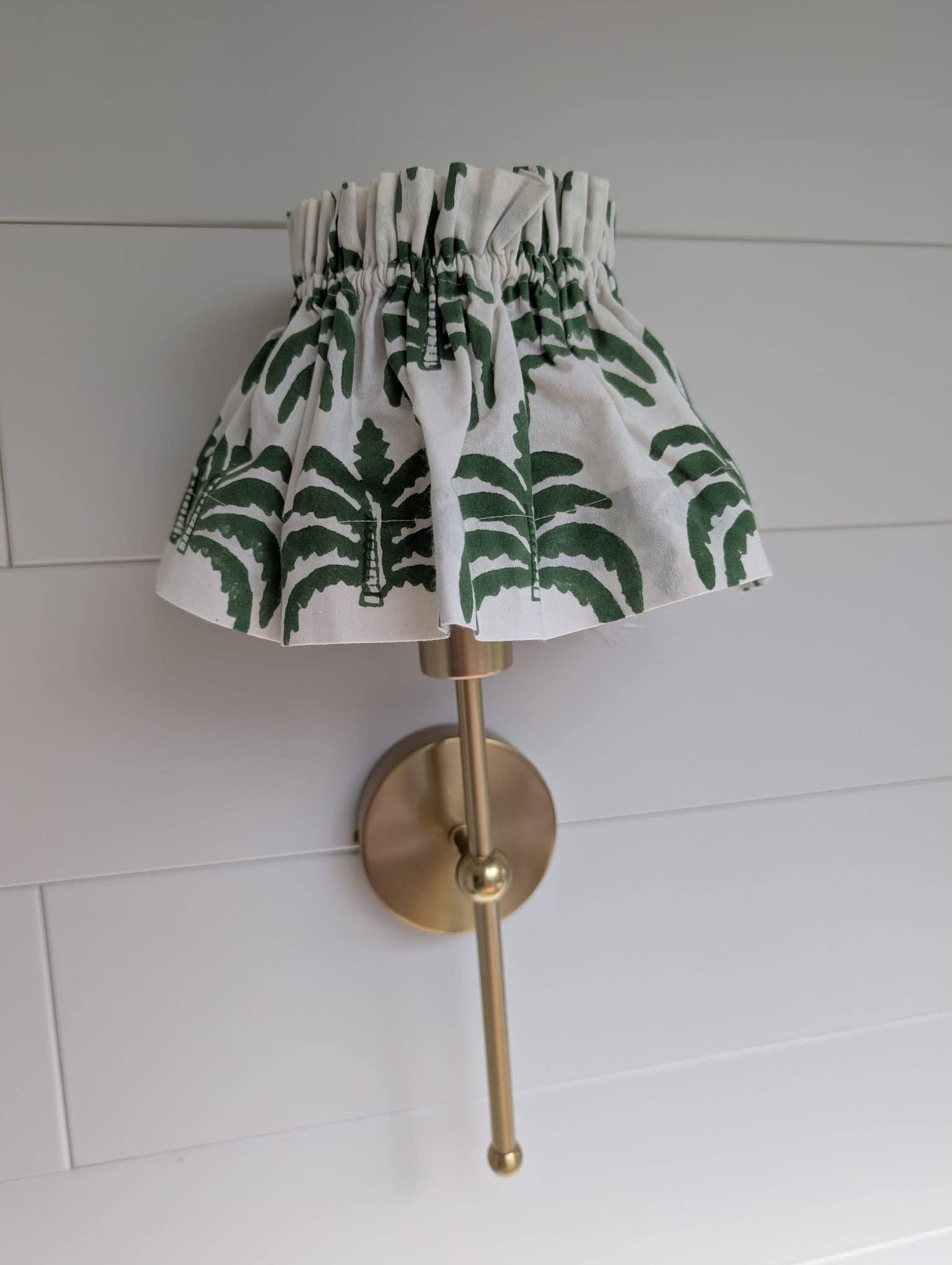 Handmade in India, our cotton cover features a green palm print and fits 16cm lampshades effortlessly.
